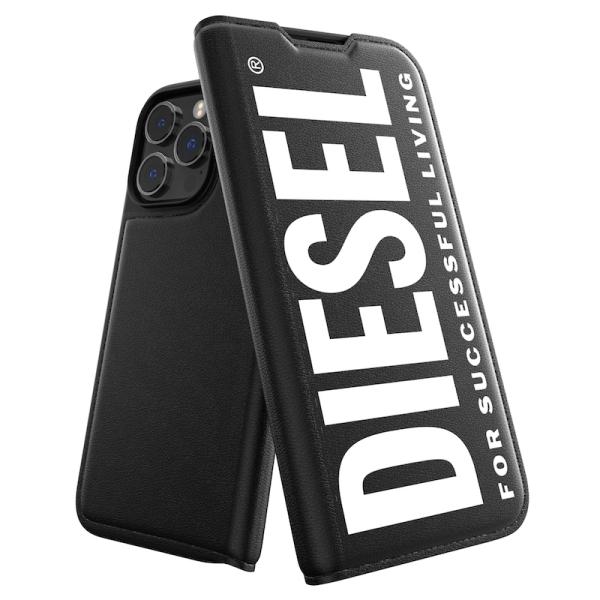 送料無料 DIESEL ディーゼル iPhone14ProMax 手帳型ケース アイフォン 手帳 ケース カバー スマホケース 耐衝撃 TPU ロゴ ラバープリント ブラック/ホワイト 黒