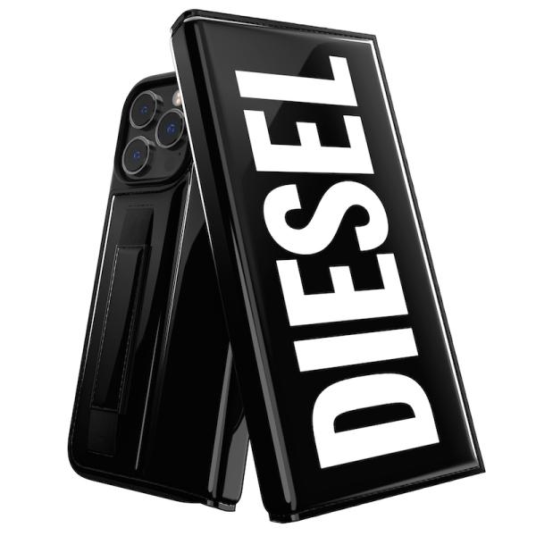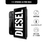送料無料 DIESEL ディーゼル iPhone 14 Pro Max 手帳型 アイフォン カバー スマホケース ラージロゴ ハンドストラップ 光沢 フェイクレザー [ブラック 黒]