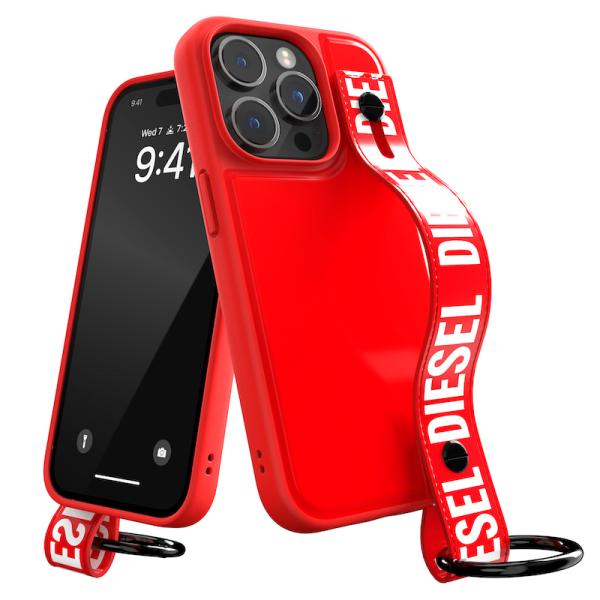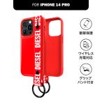 送料無料 DIESEL ディーゼル iPhone 14 Pro ケース アイフォン カバー スマホケース ハンドストラップ ベルト 落下防止 グリップ スタンド機能 [レッド 赤]