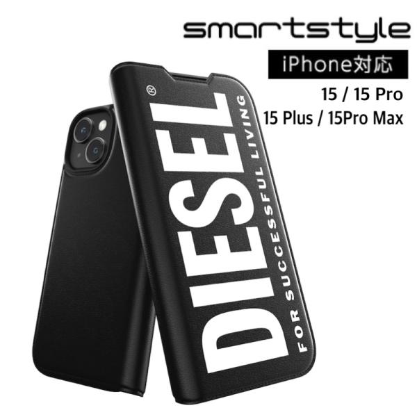 送料無料 DIESEL ディーゼル iPhone 15 / 15Pro / 15Plus / 15ProMax 手帳型 ケース ラージロゴ ラバープリント [ ブラック 黒 ] オシャレ ブランド 人気