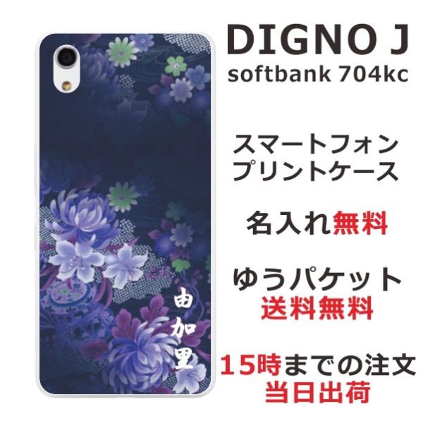 DIGNO J ケース 704kc ディグノJ カバー らふら 名入れ 和花 青紫グラデ