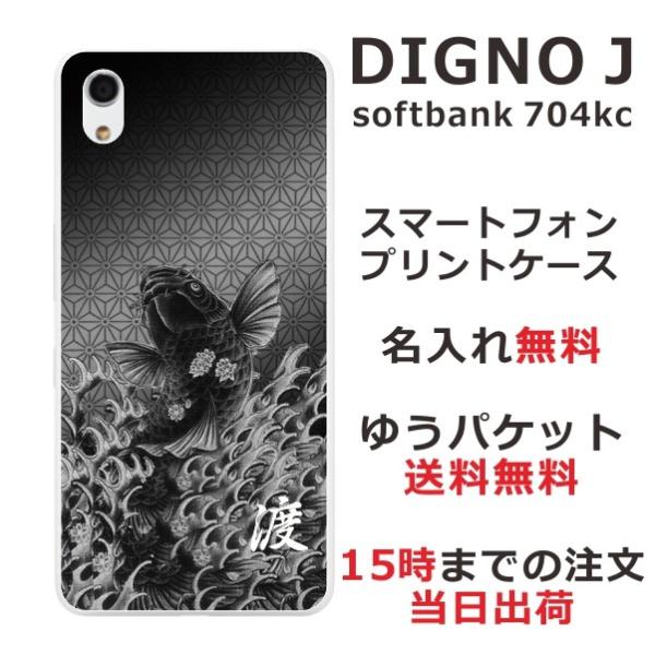 DIGNO J ケース 704kc ディグノJ カバー らふら 名入れ 昇り鯉黒