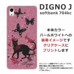 DIGNO J ケース 704kc ディグノJ カバー ラインストーン かわいい らふら 名入れ 黒猫と蝶
