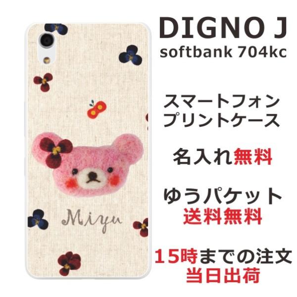 DIGNO J ケース 704kc ディグノJ カバー らふら 名入れ フェルト風 ベア ピンク
