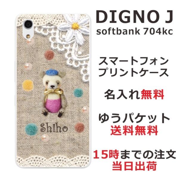 DIGNO J ケース 704kc ディグノJ カバー らふら 名入れ コットンレース風クマ