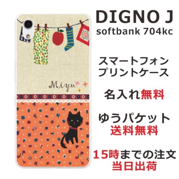 DIGNO J ケース 704kc ディグノJ カバー らふら 名入れ 黒猫と洗濯物オレンジ花