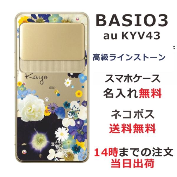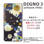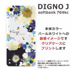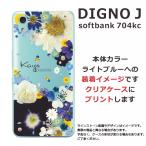 DIGNO J ケース 704kc ディグノJ カバー ラインストーン かわいい フラワー 花柄 らふら 名入れ 押し花風 フラワーアレンジブルー