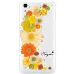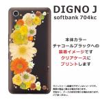 DIGNO J ケース 704kc ディグノJ カバー ラインストーン かわいい フラワー 花柄 らふら 名入れ 押し花風 クレッシェンドイエロー