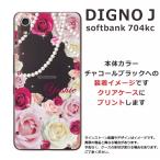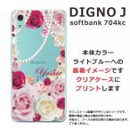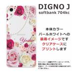 DIGNO J ケース 704kc ディグノJ カバー ラインストーン かわいい フラワー 花柄 らふら 名入れ 押し花風 ローズダークピンク