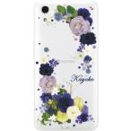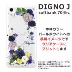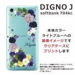 DIGNO J ケース 704kc ディグノJ カバー ラインストーン かわいい フラワー 花柄 らふら 名入れ 押し花風 ブルーアレンジ