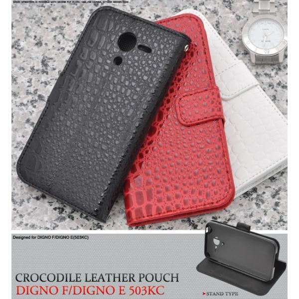 DIGNO F DIGNO E 503KC スマホケース 手帳型 クロコダイルPUレザー ディグノ スマホケース Y!mobile ワイモバイル Softbank