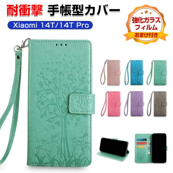 シャオミ Xiaomi 14T 14T Pro 用の手帳型 TPU&PUレザー スタンド機能 ストラップ付き 人気 ケース 手帳型カバー CASE 強化ガラスフィルム おまけ付き