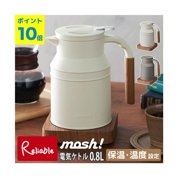 mosh! 電気ケトル 0.8L M-EK1 電気ポット ミニポット コードレス 保温 温度調節 温度設定 自動オフ 空焚き防止 モッシュ! ドウシシャ【59】