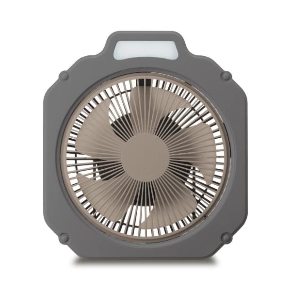 ファン+ライト、アウトドアに必須の機能を備えたライト付きファン。持ち運べて風量4段階、防水仕様のタフなボディ。スマホも充電できる給電機能も。テントやタープに吊り下げて送風、ランタンがわりにもなるライト付き。