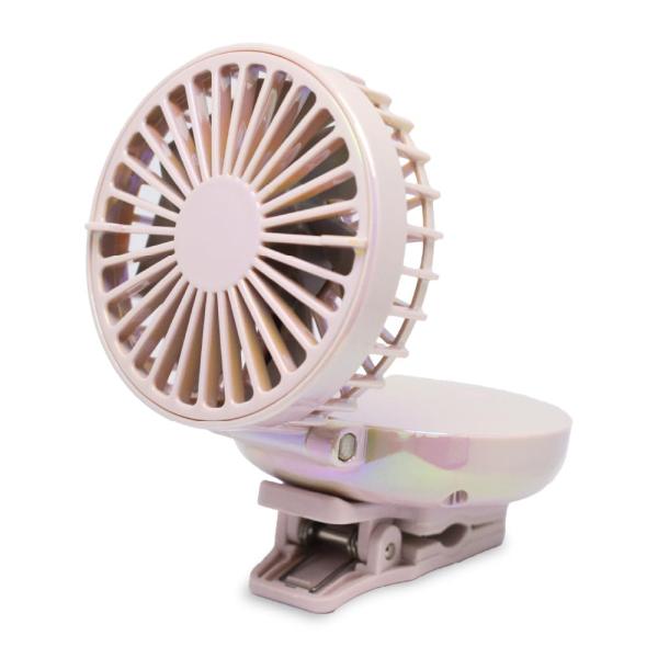 クリップ付きのコンパクトファン。ちょっとしたところにクリップで取り付けられる。日傘 リュック ベビーカー ペットカートに取り付けることができます。