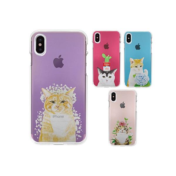 iPhone X対応 ケース カバー 明感のあるクリアケースにかわいいイラスト。猫と植物のユーモアあふれるイラストがかわいい!