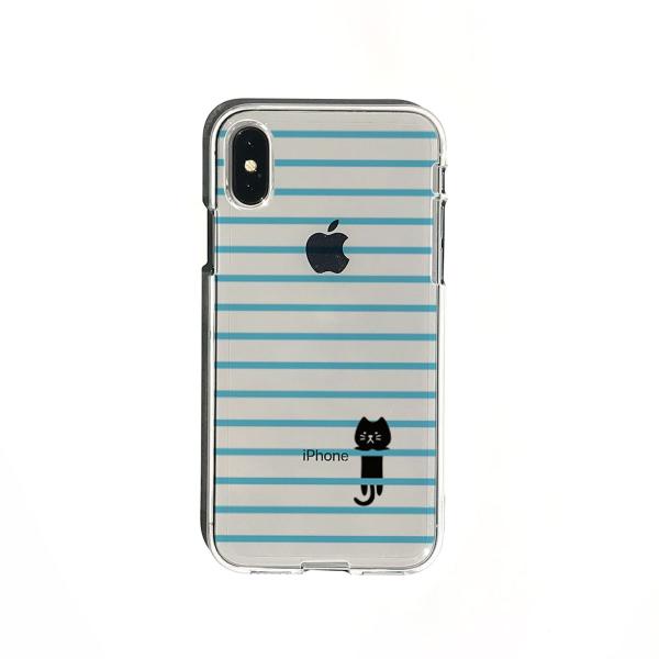 DPARKS iPhone XS / X ソフトクリアケース ボーダーネコ ブルー 仕入先在庫品