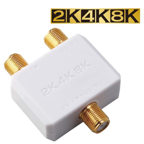 - ●新4K8K衛星放送に対応した混合(分波)器です。・テレビの電波を地デジ(UHF)電波とCS・BS電波を混合(分波)します。・入出力端子はF形プラグ式。・プラグに金メッキを採用。信号劣化や接続不良を防止します。・混合側プラグとCS/BS端子間は通電形です。・本体内部にダイカストケースを採用した高シールド設計で、携帯電話や各種無線サービスなどの電波干渉を抑制します。・壁面TV端子やテレビ、レコーダーへの接続は、別売の同軸ケーブルを使用します。・JEITA SHマーク認証済み。白色モデルです。【仕様】入力:F形コネクタ出力:F形コネクタプラグ・コネクタメッキ仕様:金メッキ外形寸法:40.9×50.4×16.6mm