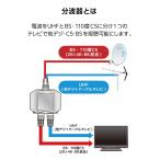 入出力側ケーブル付分波器。テレビの電波を地デジ(UHF)とCS・BSに分けます。