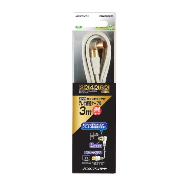 - 新4K8K衛星放送(3224MHz)対応製品です。 アンテナ(CATV)で受信したテレビ信号を テレビやレコーダーに伝送するケーブルです。 シールドプラグ付2Cケーブル(極細) ケーブル長3m 片側ストレート形プラグ・片側L形プラグ JEITA HSマーク認証済み。 パック入り商品。 保証期間:1年DXアンテナ テレビ接続ケーブル(3m)[2K・4K・8K対応] 白 L形プラグ+ストレートプラグ 2Cケーブル 2JW3SLSB 2JW3SLS(B) 新4K8K衛星放送に対応 2