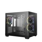 CG330 3F は、デュアルチャンバー構造で優れた気流をもつパノラマ型 Micro-ATX ケースです。標準搭載の 3 基の ARGB ファンが、鮮やかなショーケースを作り出します。