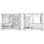 CG330 3F WH は、デュアルチャンバー構造で優れた気流をもつパノラマ型 Micro-ATX ケースです。標準搭載の 3 基の ARGB ファンが、鮮やかなショーケースを作り出します。