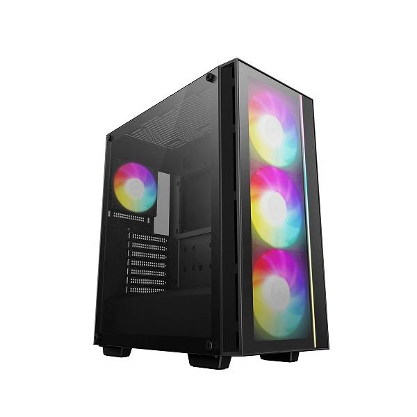- メーカー DeepCool ディープクール 型番 R-MATREXX55-BCADA4-G-4 JAN 6933412774341 【商品説明】 ●定番のクラシックデザイン 「MATREXX 55」シリーズお馴染みの、フロント部のARGBファンとフロントLEDストリップを組み合わせたデザイン 高級感を引き立てる強化ガラスフロントパネル搭載しています。 ●高い拡張性 最長370mmのグラフィックカードや最大165mmのCPUクーラー、最長170mmの電源ユニットを搭載可能など、幅広い構成に対応します。 ●I/Oパネル I/OポートにはUSB 3.0 Type-Aポートやオーディオジャックに加え、USB Type-Cポートを搭載。 ARGB LEDコントロールボタンも装備しています。 【仕様】 ・サイズ:ミドルタワー ・素材:ABS+SPCC+強化ガラス ・寸法:421×215×483mm ・厚さ スチールパネル:0.5mm 強化ガラスパネル:4mm ・対応マザーボード:ATX/MicroATX/Mini-ITX ・拡張スロット:7 ・ドライブベイ:3.5":2 / 2.5":2+1 ・I/Oポート:Type-C×1、USB3.0×1、Audio×1 ・対応ケースファン フロント:120mm×3 / 140mm×3 ※140mm ARGB PWMファン×3基標準搭載 トップ:120mm×2 / 140mm×2 リア:120mm×1 ※120mm ARGB PWMファン×1基標準搭載 ・電源シュラウド:120mm×2 ・対応ラジエーター フロント:120/140/240/280/360mm トップ:120/140/240/280mm リア:120mm ・対応CPUクーラー:165mm ・対応グラフィックカード:370mm ・対応電源ユニット:ATX PS2(最長:170mm) ・ケーブルマネジメント:裏配線スペース:20mm ・重量:6.9kg