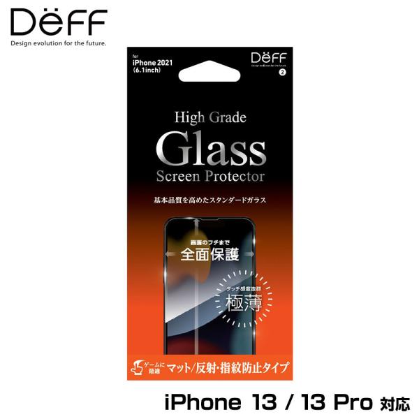 - iPhone 13 / iPhone 13 Pro ガラスフィルム「High Grade Glass」マット・指紋防止 「High Grade Glass Screen Protector」は衝撃に強く透過率が高いガラス製スクリーンプロテクターです。端面にラウンドエッジ加工を施し高級感ある仕上がりになっています。また特殊表面処理により、指紋や汚れがつきにくくサッと拭き取ることができます。 「透明クリア」、屋外でも見やすい反射防止加工で指すべりも抜群な「ゲーム/マット」、目が疲を軽減する「ブルーライトカット」をご用意しています。 ▼貼りやすく、触り心地の良い表面処理表面処理は多層コーティングが施されており、気持ちの良い指滑りを実現しました。格別の操作感を実感できます。また、汚れにも強く、指の脂や化粧品などが付着しても軽くひと拭きで綺麗に拭き取れます。万が一割れても、破片が飛散したり指に刺さることのないよう、特殊なフィルムで飛散防止処理が施されています。 Deff(ディーフ)の名の由来は「Design evolution for the future.」「独創性の高いアイデア」と「進化するデザイン」で、時代にあったライフスタイル提案とその未来を創造したいという思いが込められています。ユーザーに本当に役立つ製品を提供する「メーカー」が本来持つべき姿勢を第一に考え、模造品ではないオリジナルにこだわったユーザーの皆様の生活を豊かにしていく「モノづくり」を実現します。時代や環境によって変化する「使いやすさ」や「最適な素材」を考えた設計に機能美を加え語らずとも製品がユーザーに支持され、国内メーカーとして、日本人による世界に通用するブランドを目指しています。 製品仕様 製品名 High Grade Glass Screen Protector for iPhone 13 Series マット・指紋防止 ブランド Deff 型番 DG-IP21SM2F DG-IP21MM2F DG-IP21LM2F 製品素材 ガラス(基材)、フィルム(飛散防止処理、粘着部) 対応機種 iPhone 13 mini / iPhone 13 / iPhone 13 Pro / iPhone 13 Pro Max