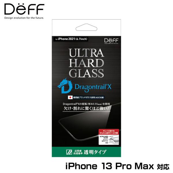 iPhone 13 Pro Max 用 保護 ガラスフィルム ULTRA HARD GLASS アイフォン 13 プロマックス 透明クリア 高光沢 deff AGC DragonTrail X 原板 0.55mm厚 強度8倍