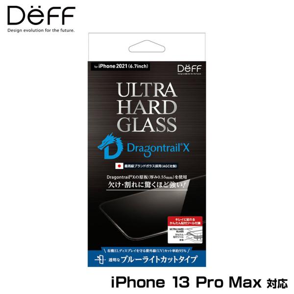 iPhone 13 Pro Max 用 保護 ガラスフィルム ULTRA HARD GLASS アイフォン 13 プロマックス ブルーライトカット deff AGC DragonTrail X 原板 0.55mm厚 強度8倍