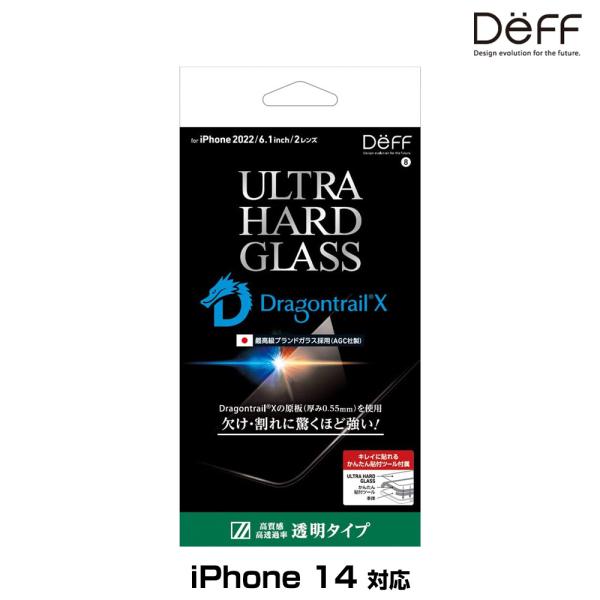 iPhone14 用 ガラスフィルム ULTRA HARD GLASS for iPhone 14 透明 高光沢 AGC DragonTrail X 採用 Deff かんたん貼り付けツール付き