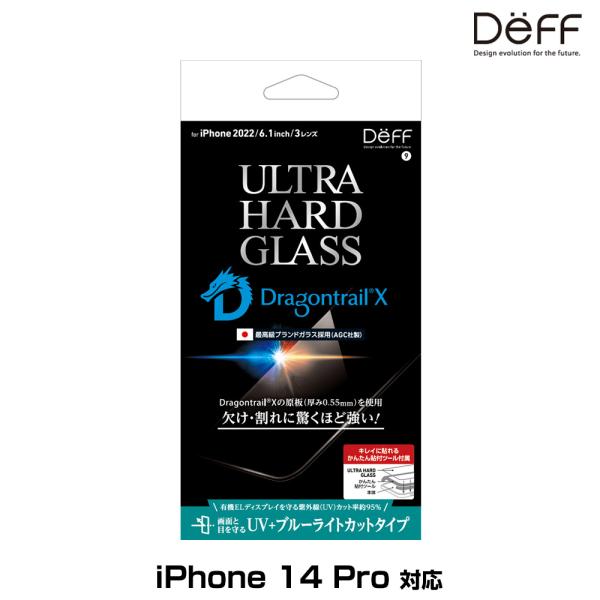 iPhone14 Pro 用 ガラスフィルム ULTRA HARD GLASS for iPhone 14 Pro UVカット ブルーライトカット AGC DragonTrail X 採用 Deff