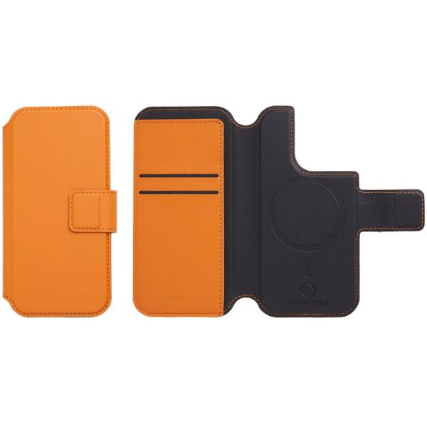 - 脱着がスムーズで、必要な時だけ手帳型にできるマグネットで取り外し可能なMagSafe対応カバー■ケースの有無、ケースの種類を選ばず使用可能MagSafeに対応したiPhoneシリーズ(12以降)や、MagSafeに準拠したケースを装着していれば、そのまま本製品を利用できます。■肌触りの良い、ソフトレザー(合成皮革)を採用■端末を保持するノンスリップシートマグネットでiPhoneやケースを保持するため、力の加減によってはiPhoneがズレてしまいます。使用感を向上するため、ケースの裏地には滑りにくく耐水性・耐汚性に優れたノンスリップシートを採用しています。■利便性を考慮したL字ポケット+カードポケット紙幣や領収書など取り出しやすく、使いやすい大口のポケット形状にしています。 カード類も2枚まで入る構造です。※「磁気カード」は磁石の影響を受けやすく磁気不良を起こし使用できなくなるため、SNAPCOVERには入れないでください。※「ICカード」は磁気に強いため、磁気不良を起こしにくくなっています。 ただし精密機器のため、ICカードと磁石部分を重ねたり、過度な力を加えたりしないよう注意してください。