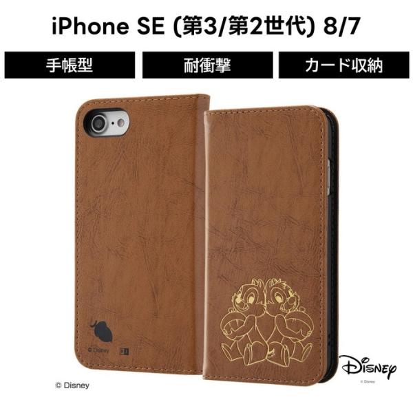 iPhone SE2 ケース ディズニー キャラクター 手帳型ケース ホットスタンプ ワンポイント / チップ&デール iphone8 iphone7 アイフォン8 カバー