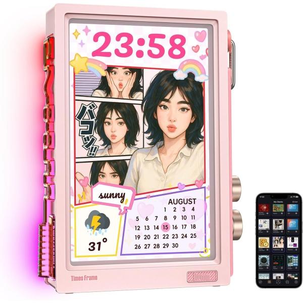 Color:ネオンピンク 【サクサク動作・Wi-Fi6急速アップ】デジタルフォトフレーム Divoom Times Frame 半透明デザイン RGBライト 64GB内蔵 10.1インチ 1080P 専用