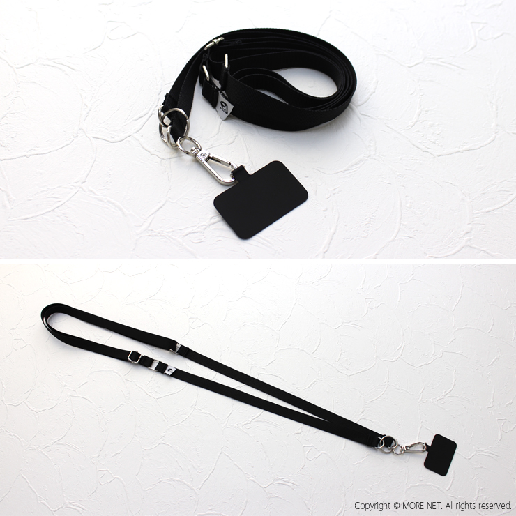 ・バッグにも使用されるウェビングテープを使用し、一般的な丸紐状スマホ用ストラップと比べて肩への負担を軽減してくれるのも嬉しいポイントに。
