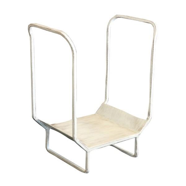 白を基調にしたアンティーク調のデザイン。薪から生じるカスなどがこぼれないよう底面が付いた、シンプルなウッドホルダー(スモールサイズ)です。