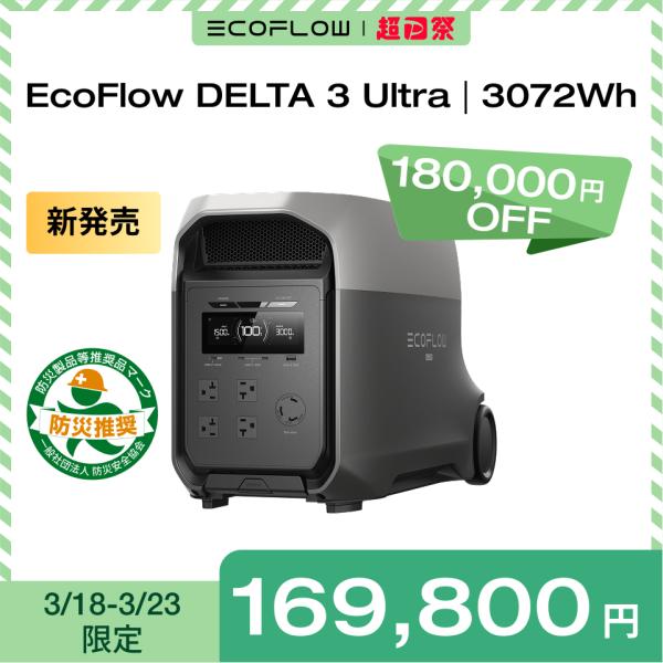 新発売!EcoFlow DELTA 3 Ultra ポータブル電源 3072Wh 大容量 蓄電池 家庭用 バッテリー 防災 バッテリー充電器 エコフロー