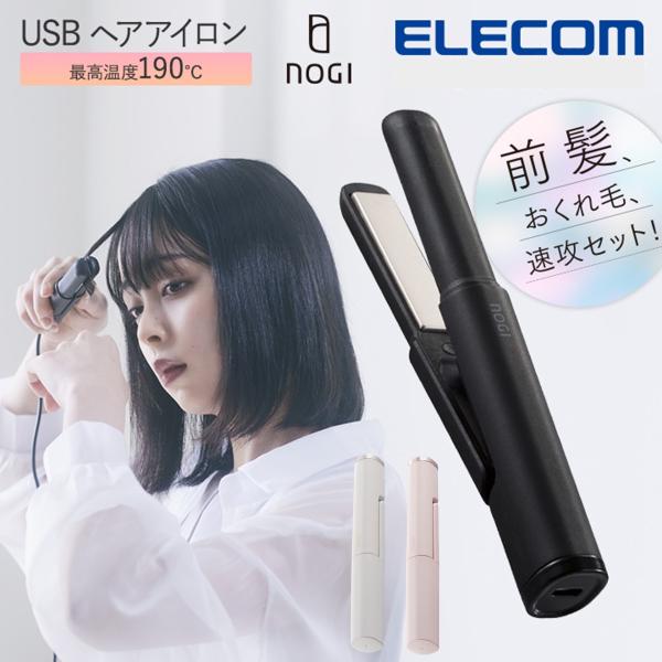 【出先で前髪対策】 ヘアアイロン ミニ NOGI アイロン ストレート 前髪アイロン USB給電 持ち運び 旅行 前髪 HAB-HIS01U エレコム 公式店 日本メーカー