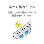 - 雷サージから電子機器を守る、雷ガード機能を搭載!■オフィスやご家庭など、さまざまなシーンで使いやすい、雷ガード・ほこり防止シャッター付き電源タップです。 ■雷サージから電子機器を守る、高性能雷サージ吸収素子を内蔵しています。 ■最大サージ電圧12500Vの高性能雷サージ吸収素子(バリスタ)を内蔵していますので、雷によるパソコンやAV機器などの電子機器への被害防止に有効です。 ※最大サージ電圧12500VはJEC210/212規格に基づく数値です。 ■未使用時にほこりの侵入を防止する「ほこり防止シャッター」がついています。検索キーワード:ELECOM | えれこむ | 電源タップ |オフィスやご家庭など、さまざまなシーンで使いやすい、雷ガード・ほこり防止シャッター付き電源タップです。 雷サージから電子機器を守る、高性能雷サージ吸収素子を内蔵しています。 最大サージ電圧12,500Vの高性能雷サージ吸収素子(バリスタ)を内蔵していますので、雷によるパソコンやAV機器などの電子機器への被害防止に有効です。 ※最大サージ電圧12500VはJEC210/212規格に基づく数値です。 未使用時にほこりの侵入を防止する「ほこり防止シャッター」がついています。 差込口には耐熱性に優れたユリア樹脂を使用しており、万一の発熱の際にも融解しにくく、電気火災の防止に有効です。 トラッキング現象による火災の防止に役立つ絶縁キャップ付きのコンセントプラグを採用しています。 電源コードには一般社団法人日本配線システム工業会規格(JWDS0010)に適合した二重被ふくコードを採用しており、断線や被ふく破れによる感電・火災の防止に有効です。 狭い場所でも配線しやすい180°スイングプラグを採用しています。 プラグ仕様は2ピン式で、コンパクトな3個口タイプです。本体差込口形状:2ピン 本体差込口個数:3個口 プラグ仕様:2ピン・スイングプラグ コード長:3m 定格:125V・15A・1500W 雷ガード:◯ ほこりシャッター:○ 絶縁キャップ付きプラグ:○ 二重被ふく:○ スイングプラグ:○ カラー:ホワイト 材質:本体:ABS樹脂、プラグ:PVC 差込口:ユリア樹脂 外形寸法:幅39mm×奥行92mm×高さ22.5mm ※コード部分及びプラグ部分を除く 質量:295g 使用可能地域:本製品は日本国内の電源を想定して設計されていますので、日本国外ではご使用いただけません。 電気用品安全法:PSE適合