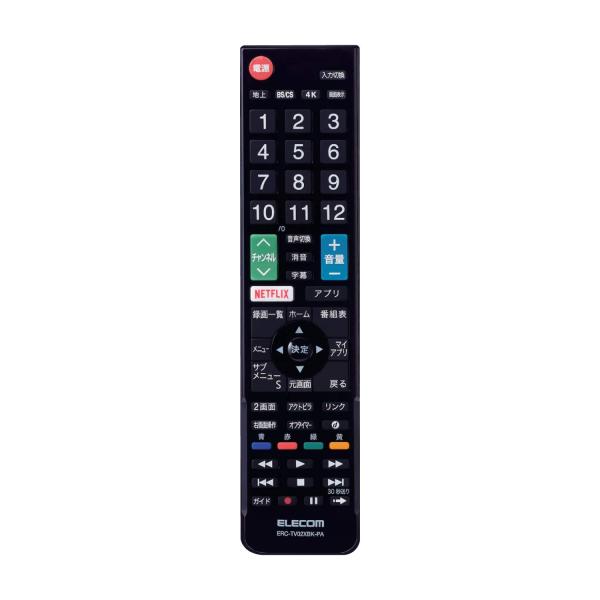 エレコム テレビリモコン Panasonic パナソニック ビエラ用 【設定不要ですぐに使えるかんたんリモコン】 ブラック ERC-TV02XBK-