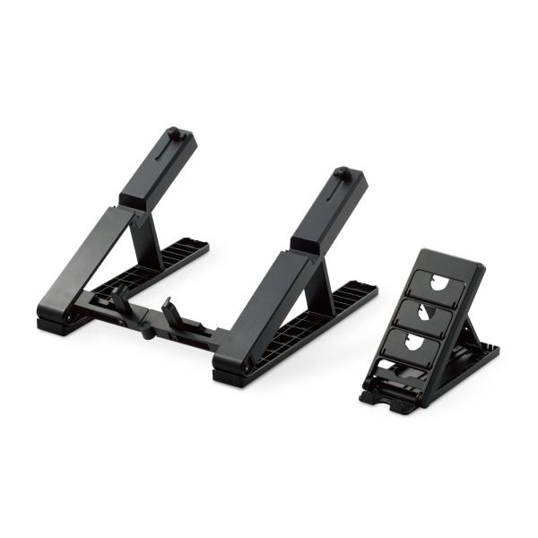 2in1スタンド設計で、ノートPC用スタンドとスマホ用スタンドを取り外して別々にご使用いただけます。スマホ用スタンドは、高さを4段階、角度を4段階に調整可能なので、お好みの位置に合わせることができます。