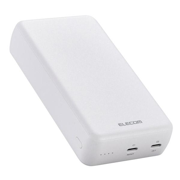 エレコム ELECOM モバイルバッテリー リチウムイオン電池 20000mAh PD対応 20W USB-C入出力 x 2 ホワイト DE-C52-20000WH
