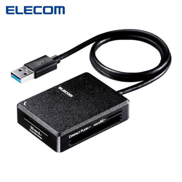 - ■商品内容高速化と自動ファイル仕分け機能を有するソフトに対応したUSB3.0カードリーダー●USB3.0対応のパソコンに接続した場合、デジタルカメラからパソコンへ直接転送するより、約9倍の高速データ転送が可能です。●エレコム独自アプリ Quick File Dealer対応。USB3.0対応のパソコンに接続し、高速化ソフト(Quick FileDealer)を使用した場合、デジタルカメラからパソコンへ直接転送するより、約20倍の高速データ転送が可能です。(※ご使用の環境によっては転送速度に違いが発生する場合がございますので、ご了承ください。)●アダプターを使用せずに52種類の多彩なメディアを読み書きでき、アダプターを使用することでさらに6種類のメディアを読み書き可能です。●外部電源を必要としないUSBバスパワー駆動です。●専用ドライバーなどのインストール作業が不要で、パソコンのUSBポートに接続するだけですぐに使用可能です。(※高速化ソフト(QuickFile Dealer)はダウンロードとインストールが必要になります。)■商品スペック寸法:W約43.0×D63×H16mm色:ブラック対応メモリー:SD、SD(HighSpeed.ProHighSpeed.Class2・4・6・10)、SDHC(Class2・4・6・10.UHS-I.UHS-II)、SDXC(Class10.UHS-I.UHS-II)、miniSD、miniSDHC(Class2・4・6)、TransFlash、microSD、microSDHC(Class2・4・6・10.UHS-I.UHS-II)、microSDXC(Class10.UHS-I.UHS-II)、MMC、RS-MMC、RS-MMC4.0、MMCmicro、MMC4.0、セキュアMMC、コンパクトフラッシュ(Type I)(3.3V)、コンパクトフラッシュ(TypeII)(3.3V)、コンパクトフラッシュ(UDMA対応)、マイクロドライブ、MS(マジックゲート.マジックゲートHighSpeed.メモリーセレクト機能付)、MSPRO(HighSpeed)、MSDuo(マジックゲート.マジックゲートHighSpeed)、MSPRODuo(HighSpeed.MARK2)、MSPRO-HGDuo、MS ROM、MSマイクロ(M2)、PSP用MSDuoインターフェース:USB3.0/USB2.0/USB1.1ケーブル長さ:約50cm対応OS:Windows 11/10、macOS Ventura13/macOS Monterey 12/macOS Big Sur 11.0/macOS Catalina 10.15電源:USBバスパワーその他仕様:●最大転送速度(理論値):USB3.0スーパースピード/5Gbps、USB2.0ハイスピード/480Mbps●コネクタ形状:USB3.0 Standard-A●スロット数:4保証期間:1年備考:※ケーブル長さはコネクター含まず。※最新のOS対応状況はメーカーHPでご確認ください。※最新の対応メモリーはメーカーHPでご確認ください。※対応メモリーには一部アダプターが必要なものが含まれます。■送料・配送についての注意事項●本商品の出荷目安は【5 - 11営業日 ※土日・祝除く】となります。●お取り寄せ商品のため、稀にご注文入れ違い等により欠品・遅延となる場合がございます。●本商品は仕入元より配送となるため、沖縄・離島への配送はできません。
