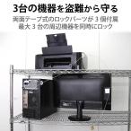 - モニタ・CPU・プリンタなどをまとめて盗難から守ります。■製品種類:南京錠+ワイヤー ■対応スロットサイズ:その他:接着 ■通常、マスター、統一、その他:通常 ■セット内容:南京錠、カギ2本、取付パーツ×3個、両面シール×3個 ■寸法:南京錠:幅30×奥行12.5×高さ48.5mm、取付パーツ:幅40×奥行40×高さ20mm ■ワイヤー長さ:1.7m ■ワイヤー太さ:2.2mm ■ワイヤー材質:スチール+ソフトPVCコーティング ■ワイヤー色:シルバー