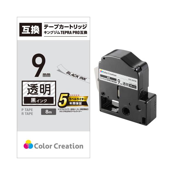 - カラークリエーション CTC-KST9K キングジム「テプラ」PROシリーズ用テープカートリッジ(透明テープ/黒文字/9mm) ●キングジム 「テプラ」PROでご使用いただける互換テープカートリッジです。【仕様】対応純正品 ST9K対応プリンタ キングジム「テプラ」PROセット内容 テープカートリッジ(1個)、取扱説明書