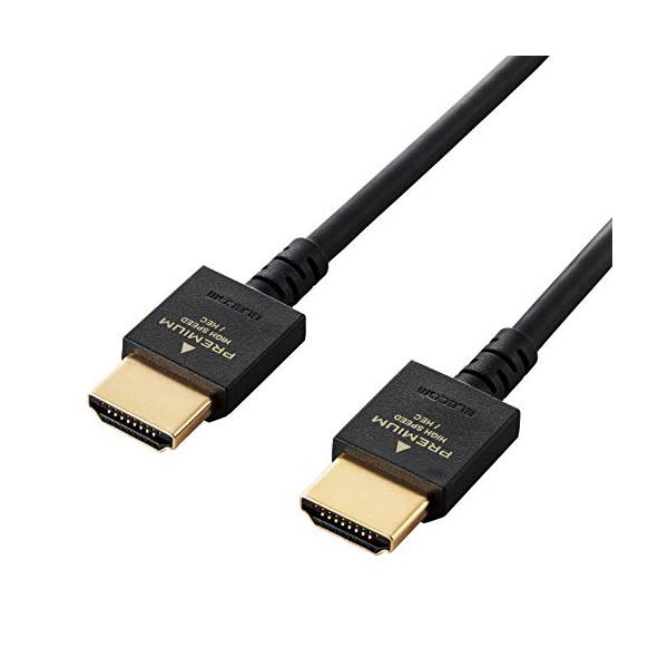 エレコム HDMI ケーブル 2m プレミアム 4K 2K (60P) HDR やわらかケーブル 小型コネクタ仕様 ブラック DH-HDP14E
