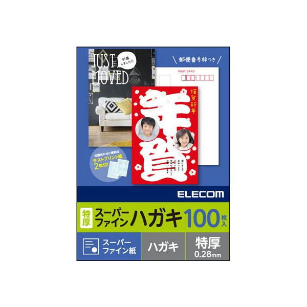 【お取り寄せ】エレコム ハガキ用紙 スーパーファイン 特厚 100枚 EJH-TSF100