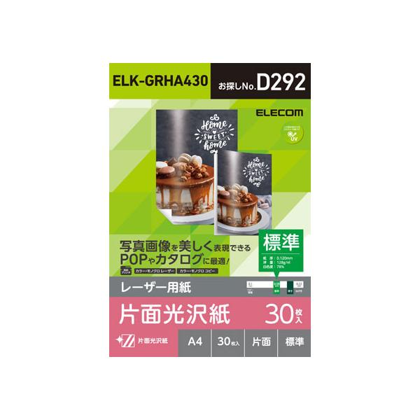 【お取り寄せ】エレコム レーザー用紙 光沢 片面 A4 30枚 ELK-GRHA430