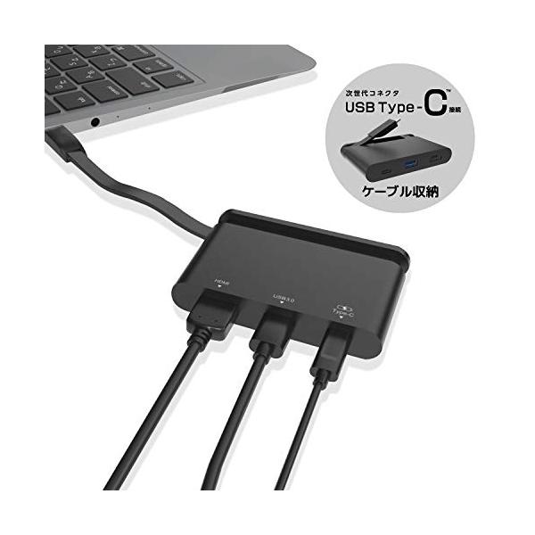 エレコム ドッキングステーション USB-C ハブ PD対応充電&データ転送用Type-C/USB3.0/HDMIケーブル収納 ブラック DST